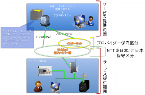 ・ユーザー様側のネットワークカメラ、入退室管理などの物理セキュリティシステムと当社のクラウドシステムを光回線で繋ぐことでワンストップでマネジメントが出来る回線サービスをご提供します。